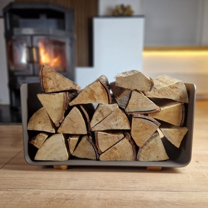 Onze haardhout houder belichaamt kwaliteit dankzij het gebruik van hoogwaardig 4mm dik massief staal en stevige Europees eikenhouten voetjes. De combinatie van deze duurzame materialen garandeert niet alleen een lange levensduur, maar geeft ook een verfijnde uitstraling aan elk interieur. Het staal biedt stevigheid en moderniteit, terwijl het eikenhout warmte en natuurlijke schoonheid toevoegt aan deze functionele en elegante haardhout houder.